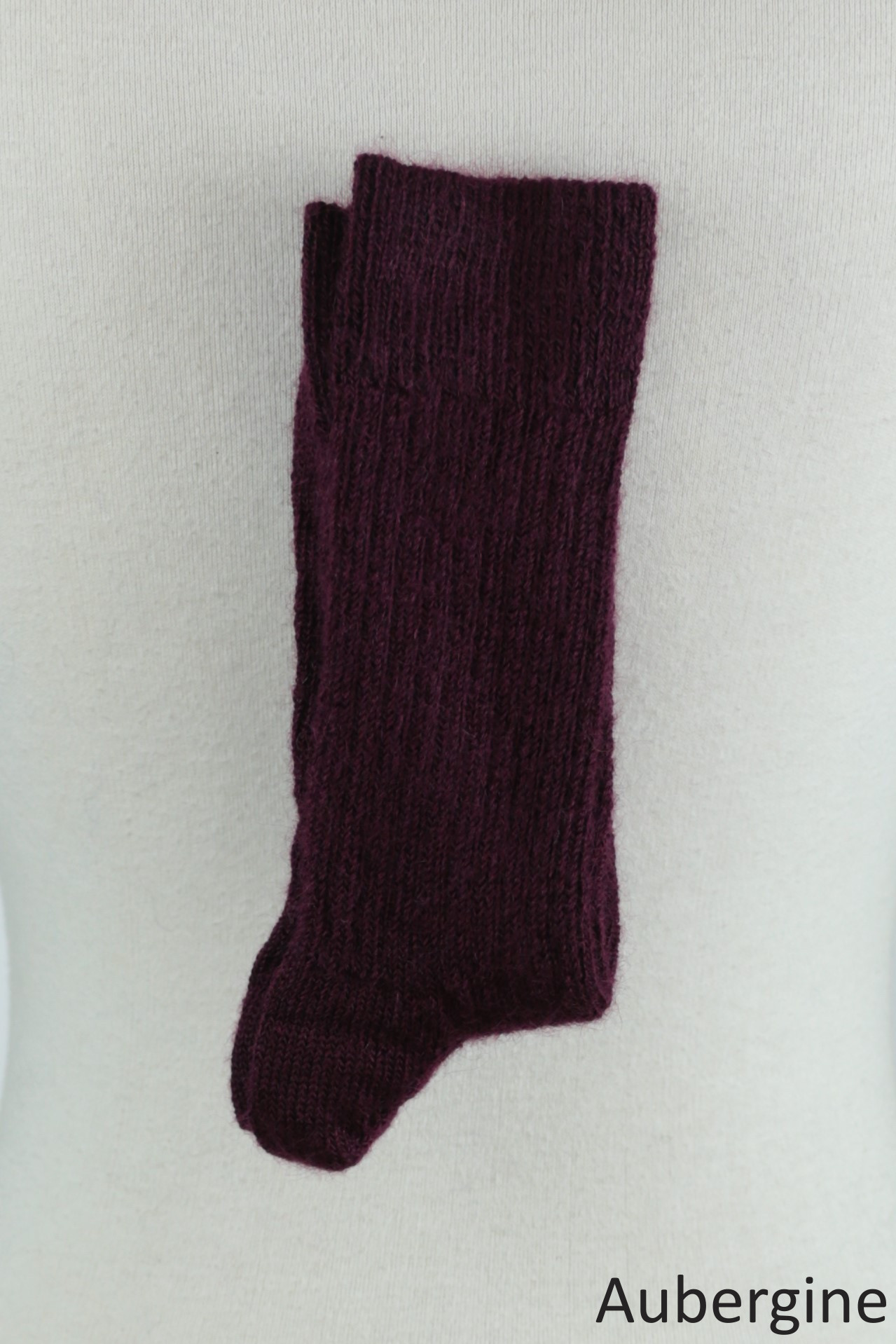 Accueil > Chaussettes classiques en mohair, taille 37 – 39 > Chaussette aubergine L